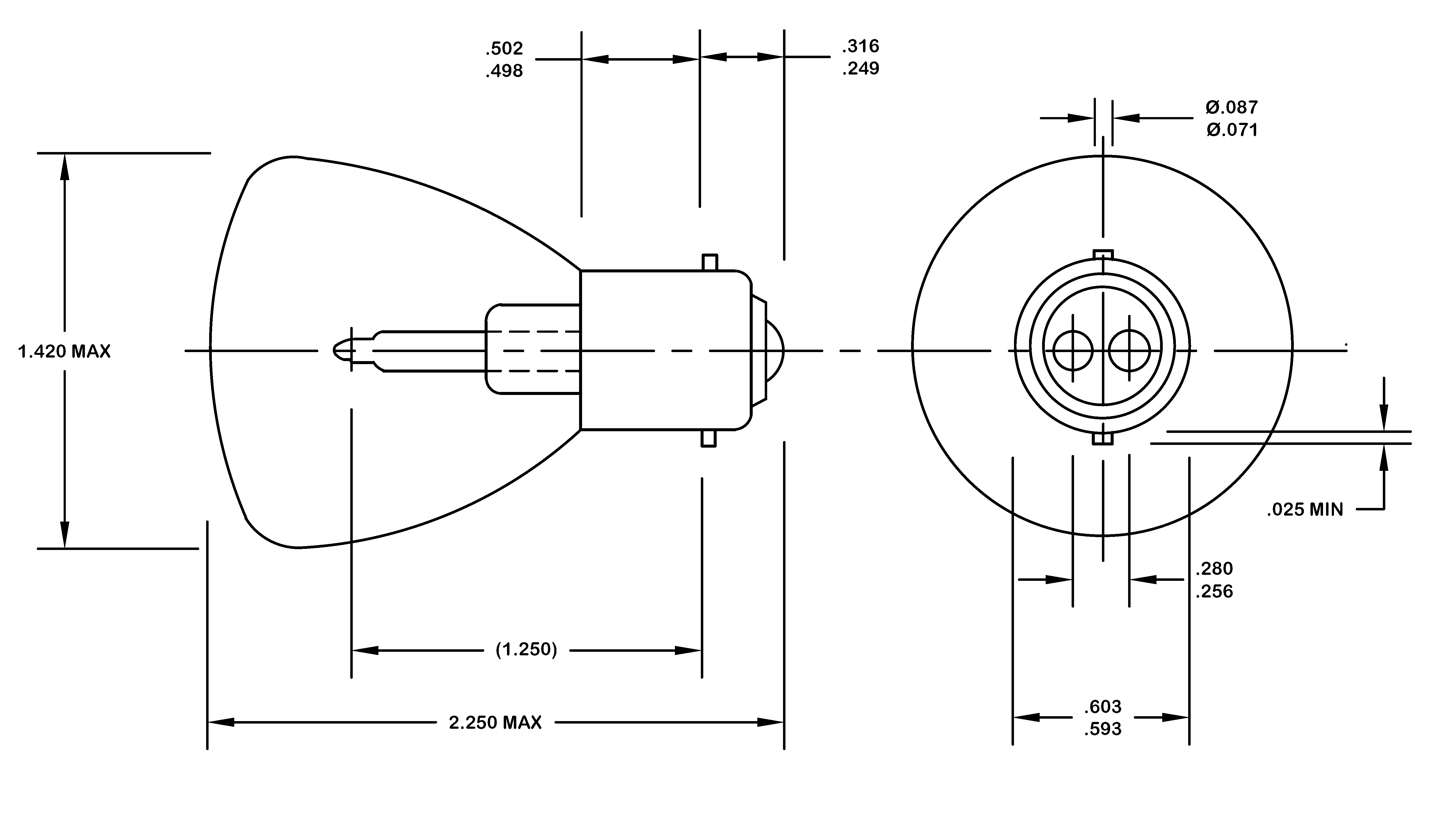 FIGURE 1. Lamp dimensions (inches).