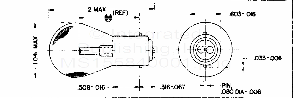 MS15584 Lamp, Incandescent, S-8, Bulb, Double Contact, Bayonet Candelabra Base