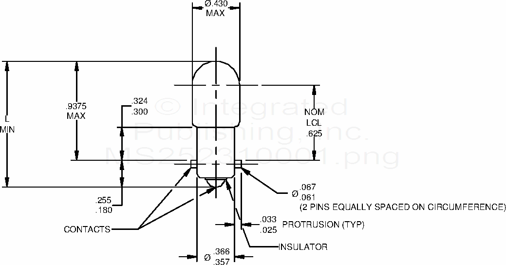 MS25231 Lamps, Incandescent, Center Contact, Miniature Bayonet Base (T-3-1/4 Bulb)