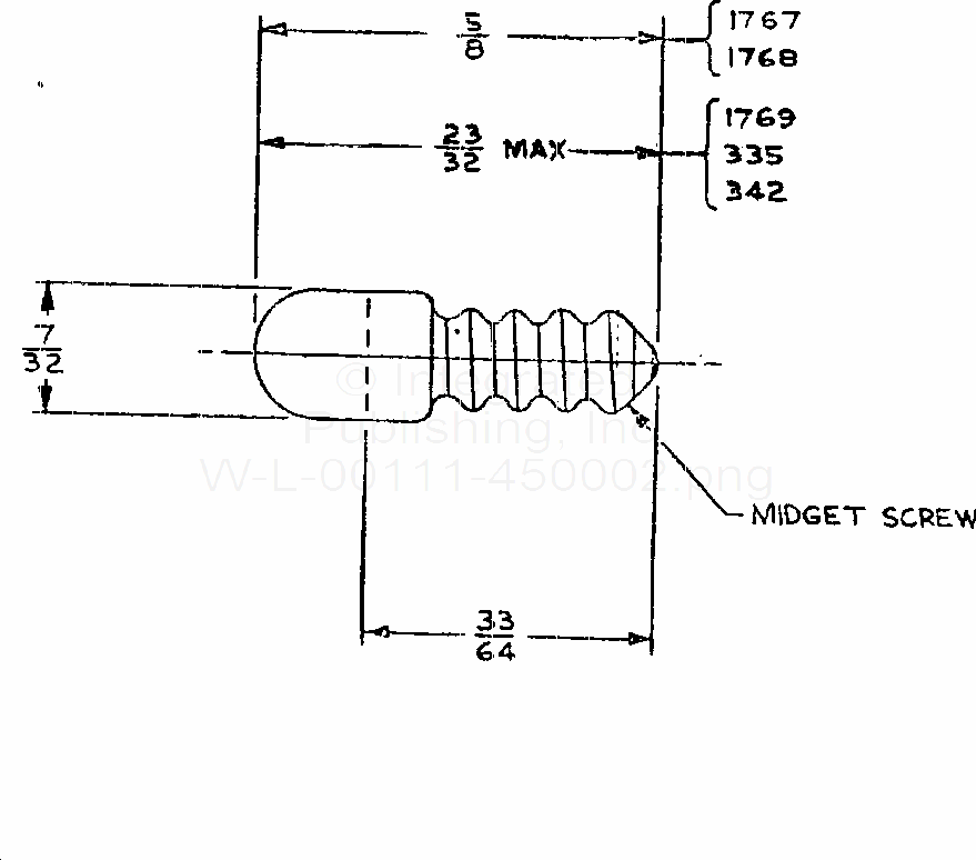Lamp, Incandescent, Miniature Trade No. 335, T - 1 3/4 Clear Bulb, Midget Screw Base, C-2F Filament