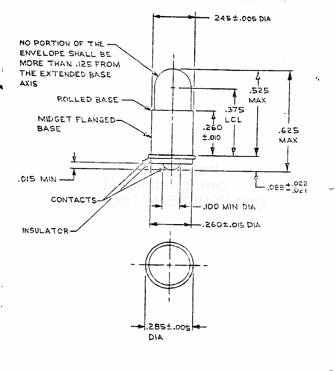 Lamp, Incandescent, Sub-Miniature Trade No. 370, T - 1 3/4 Clear Bulb, Single Contact Midget Flanged Base, C-2F Filament