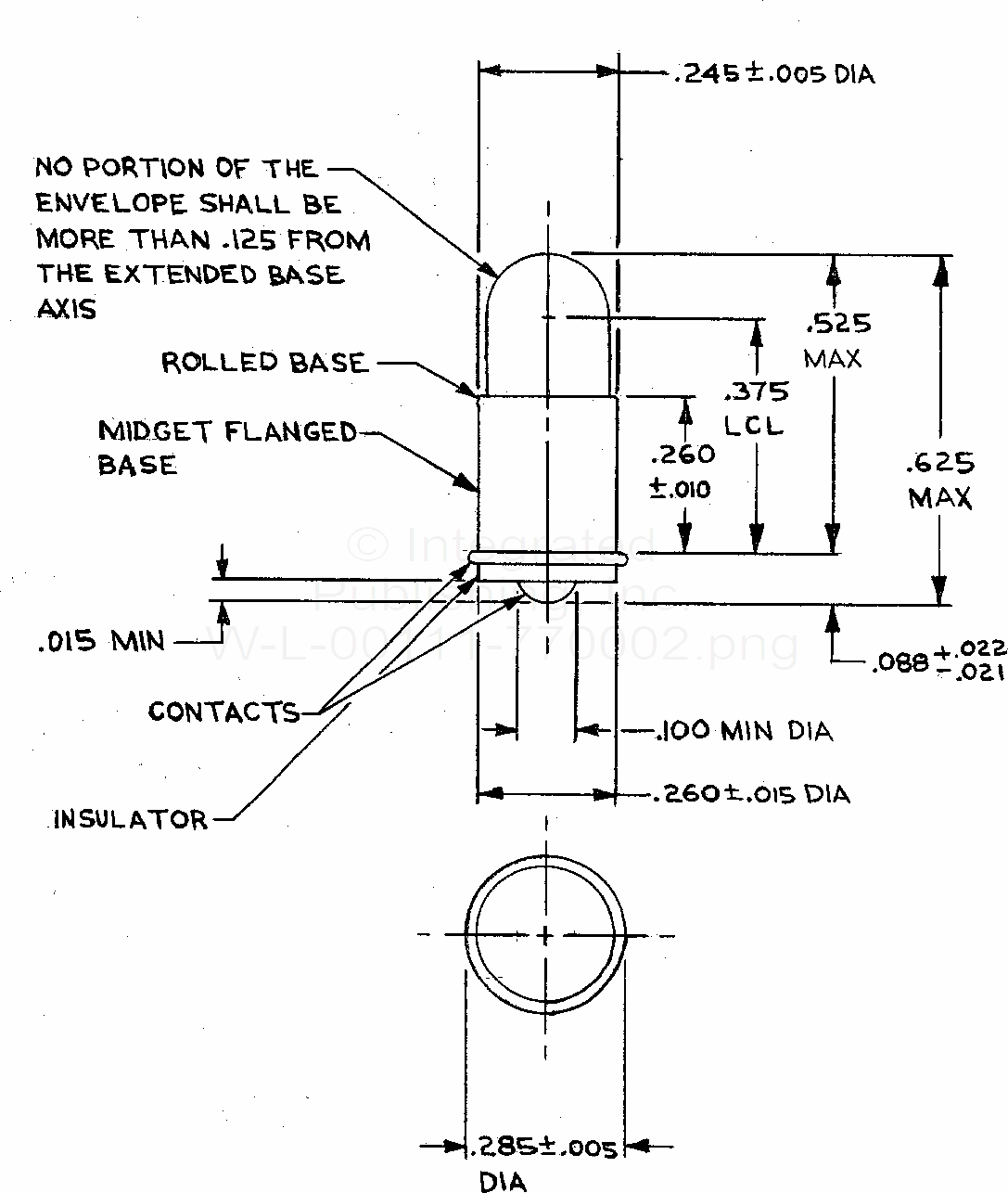 Lamp, Incandescent, (Sub-Miniature) (Trade No. 345, T - 1 3/4 Clear Bulb, Single Contact Midget Flanged Base, C-2V Filament)